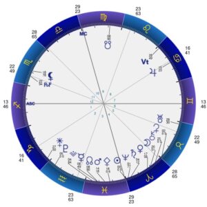 魚座から牡羊座に太陽が入った瞬間の、星の配置。春分図 主にその年の様相を表します。